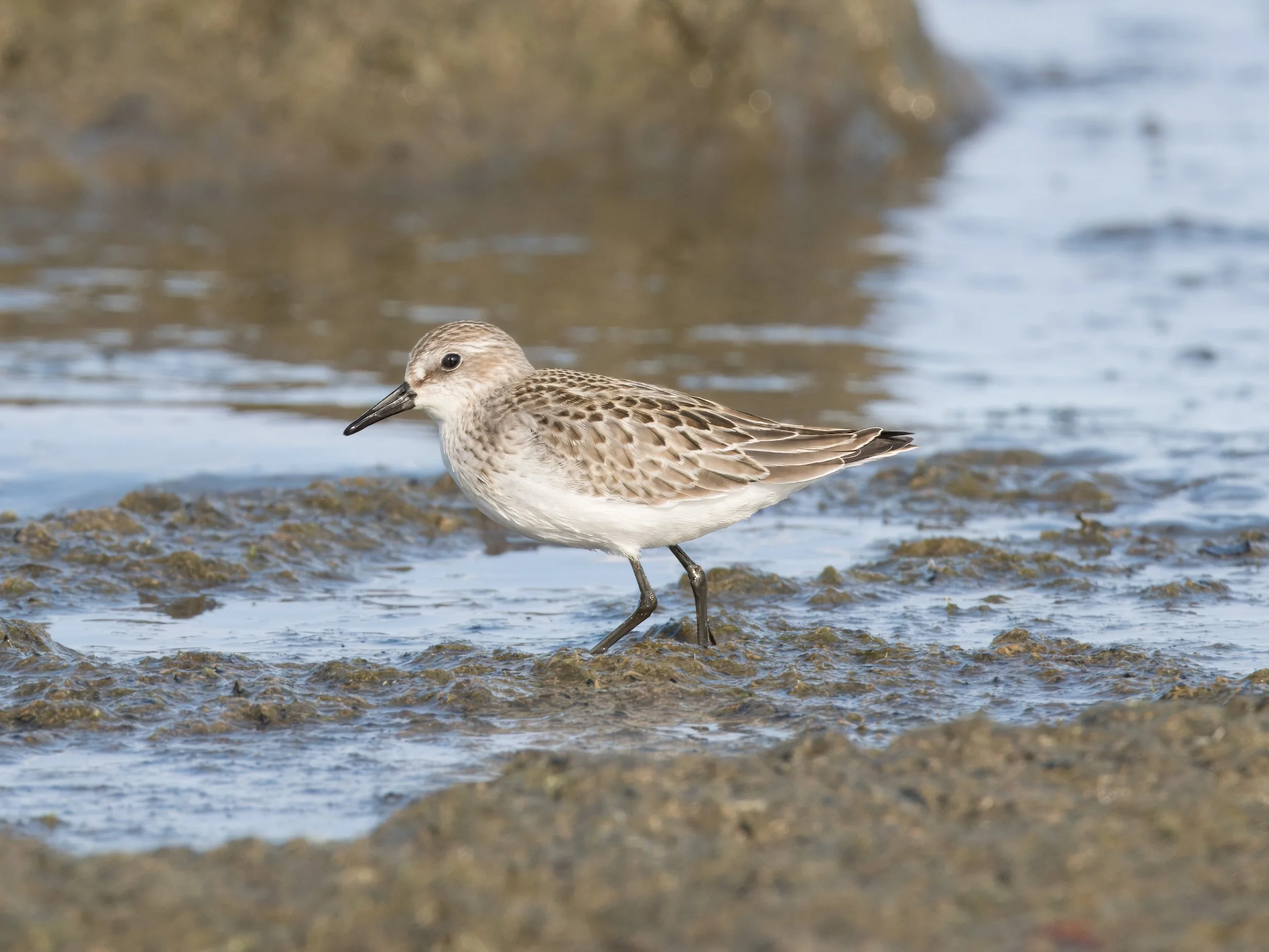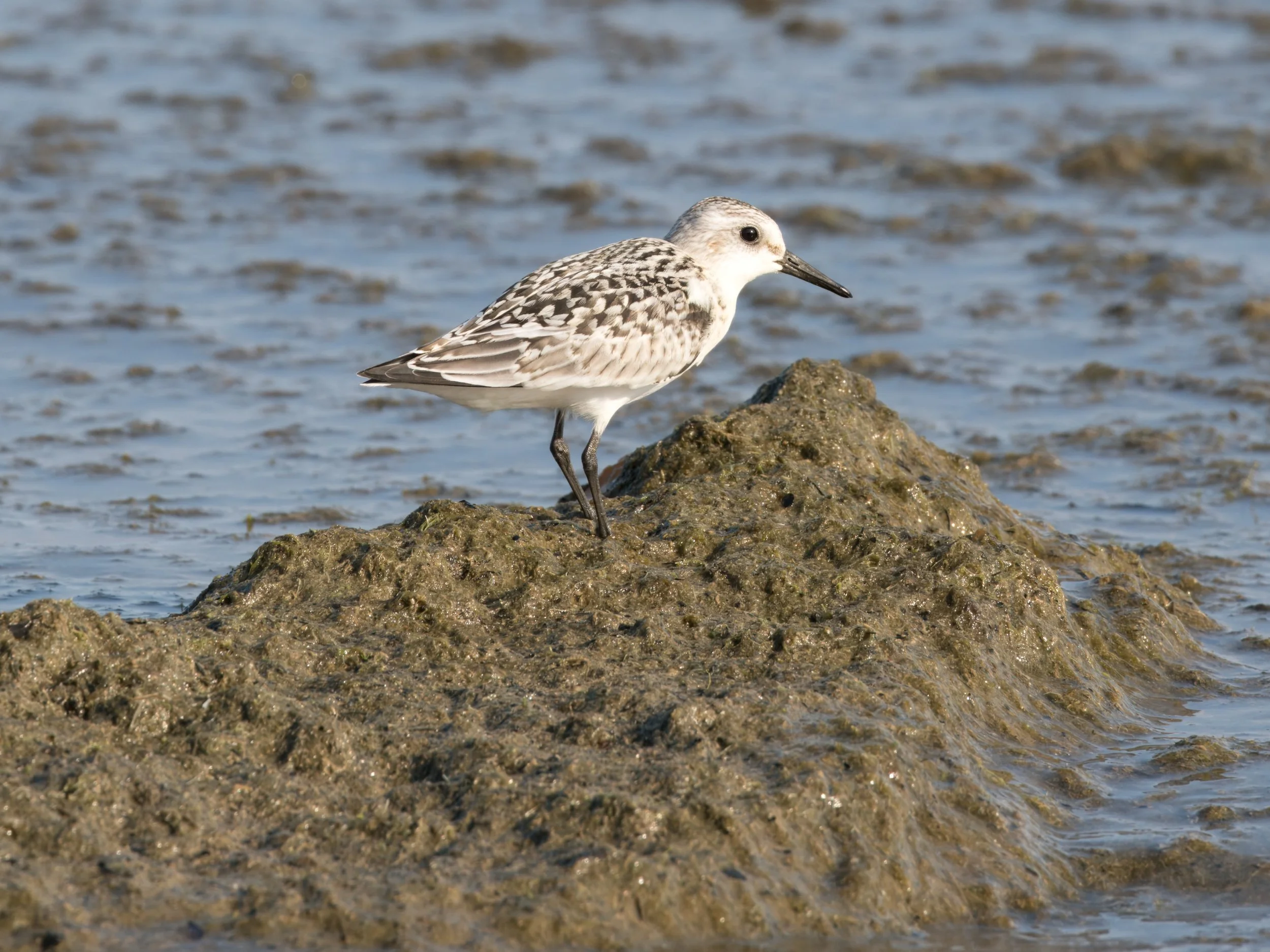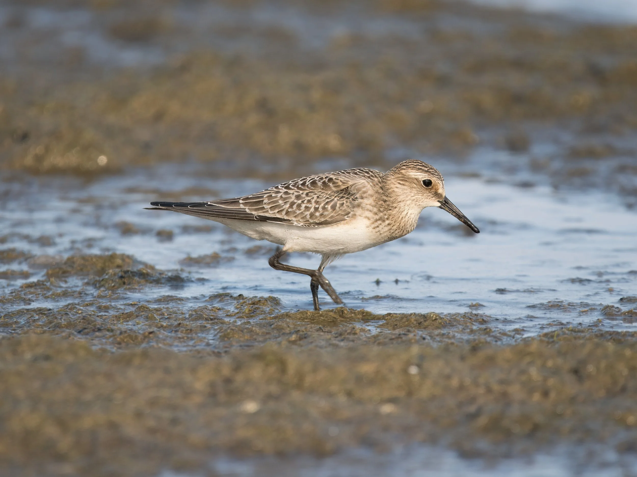 The Semipalmated Sandpipers were walking steadily along the shore, negotiating the relative mounds of algae pockmarked by small pools.