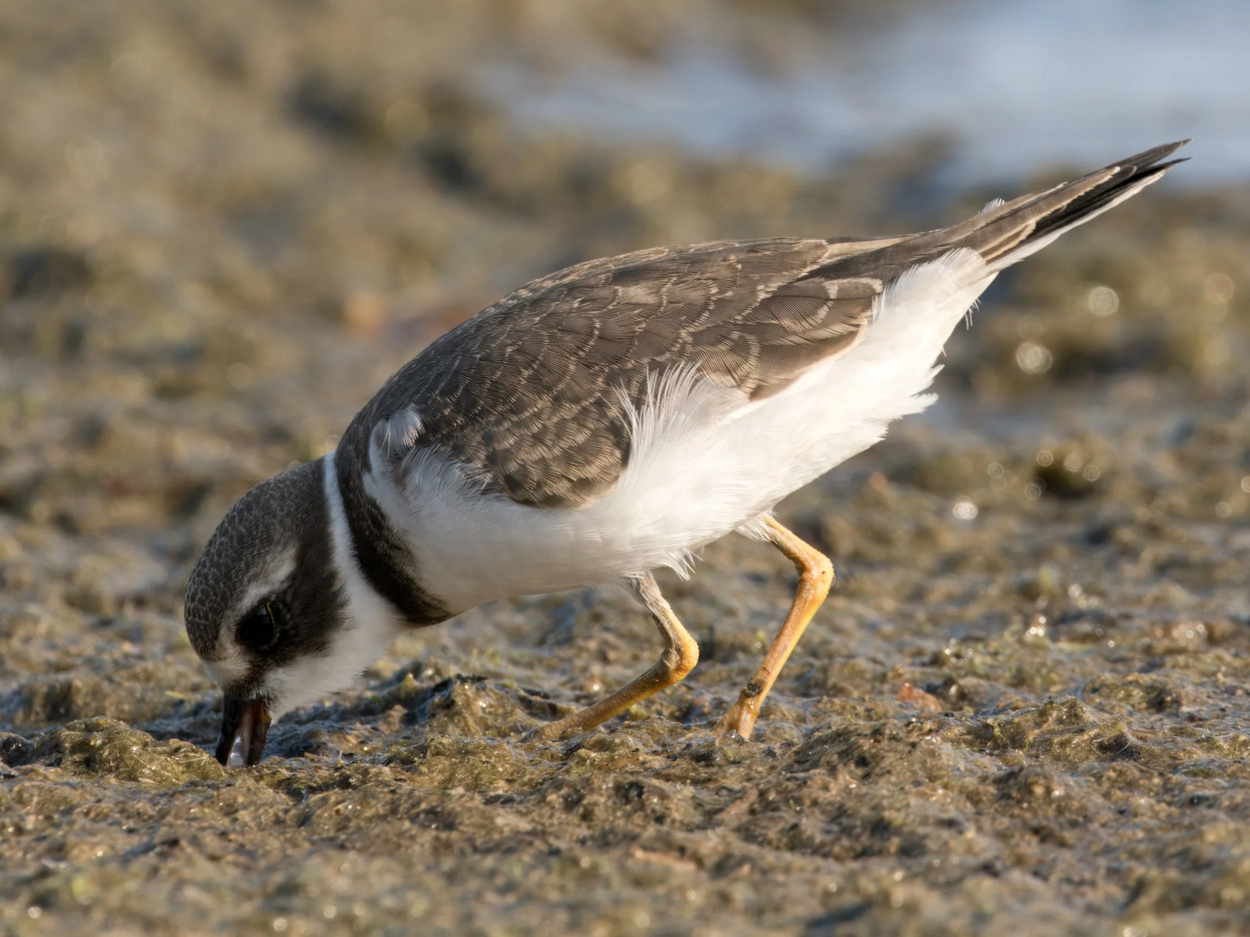 Displaying a classic “stop-and-go” approach to feeding, Semipalmated plovers find food by sight. Marines worms make up the majority of their diet, but they will feed on other amphipods, bivalves, insects, and other small invertebrates.