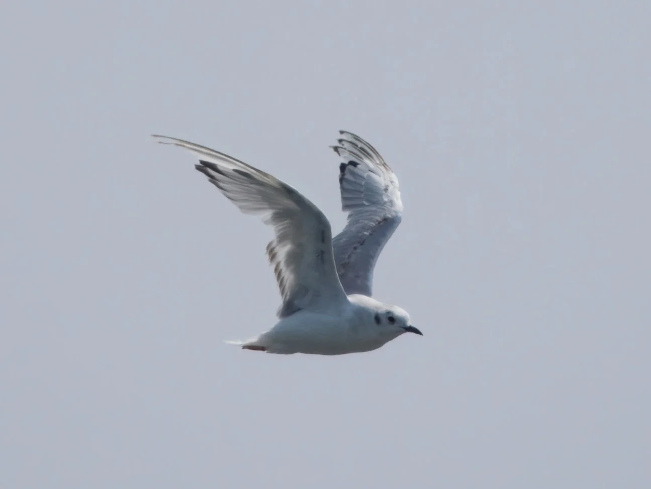 The underwings of a Bonaparte’s Gull will be white or at least pale, unlike the Little Gull’s dark coloration. However, feathers may appear worn-out from a distance.